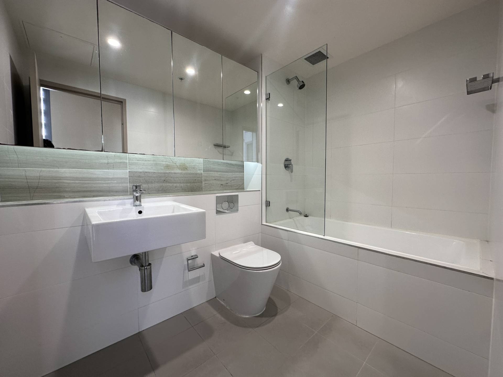 - Good-sized bathroom with bathtub and shower