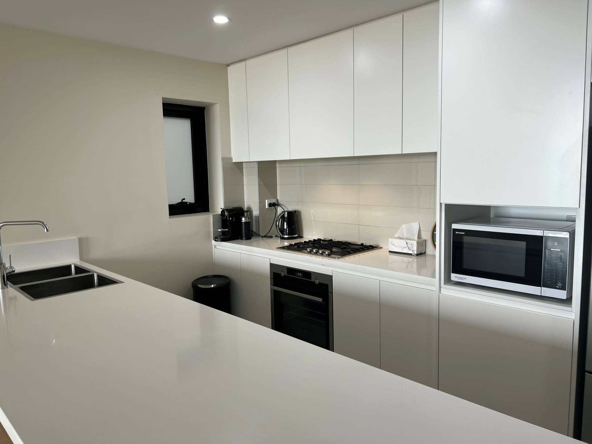 - Modern kitchen with gas cooking, stone benchtops and euro appliances